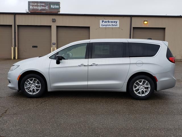Silver Mist Clearcoat 2026 Chrysler Voyager LX FWD 9-Speed 948TE Automatic 3.6L V6 24V VVT 17" x 7" Aluminum Wheels, 3.25 Axle Ratio, 3rd row seats: split-bench, 4-Wheel Disc Brakes, 6 Speakers, ABS brakes, Air Conditioning, Alloy wheels, AM/FM radio: SiriusXM, Apple CarPlay/Android Auto, Automatic temperature control, Black Seats, Brake assist, Bumpers: body-color, Caprice Leatherette Bucket Seats, Compass, Delay-off headlights, Driver door bin, Driver vanity mirror, Driver's Seat Mounted Armrest, Dual front impact airbags, Dual front side impact airbags, Electronic Stability Control, Emergency communication system: Chrysler Connect, Four wheel independent suspension, Front anti-roll bar, Front Bucket Seats, Front dual zone A/C, Front reading lights, Fully automatic headlights, Heated door mirrors, Heated front seats, Heated steering wheel, Illuminated entry, Knee airbag, Low tire pressure warning, MyFlexCare Service Plan, Occupant sensing airbag, Outside temperature display, Overhead airbag, Overhead console, Panic alarm, ParkView Rear Back-Up Camera, Passenger door bin, Passenger seat mounted armrest, Passenger vanity mirror, Power door mirrors, Power driver seat, Power Liftgate, Power steering, Power windows, Quick Order Package 27E, Radio data system, Radio: Uconnect 5 with 10.1" Display, Rain sensing wipers, Rear air conditioning, Rear window defroster, Rear window wiper, Reclining 3rd row seat, Remote keyless entry, Security system, Speed control, Split folding rear seat, Spoiler, Steering wheel mounted audio controls, Tachometer, Telescoping steering wheel, Tilt steering wheel, Touring Suspension, Traction control, Trip computer, Turn signal indicator mirrors, Variably intermittent wipers, Voltmeter.