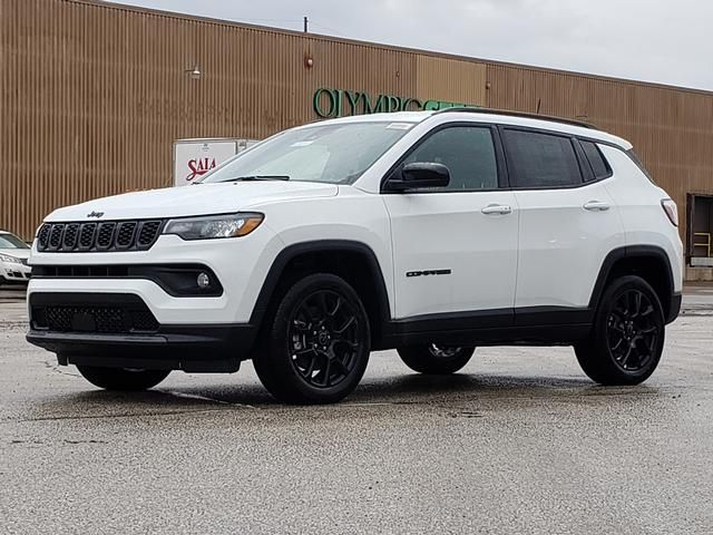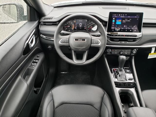 bright white clearcoat 2026 Jeep Compass Latitude 4WD 8-Speed Automatic 2.0L I4 DOHC 10.1" Touchscreen Display, 17" x 7" Aluminum Wheels, 3.73 Final Drive Ratio, 4-Wheel Disc Brakes, 4G LTE Wi-Fi Hot Spot, 6 Speakers, ABS brakes, Air Conditioning, Altitude Special Edition, AM/FM radio: SiriusXM, Auto High-beam Headlights, Automatic temperature control, Black Day Light Opening Moldings, Bluetooth Handsfree Phone and Audio, Brake assist, Bumpers: body-color, Compass, Delay-off headlights, Driver door bin, Driver vanity mirror, Dual front impact airbags, Dual front side impact airbags, Electronic Stability Control, Emergency communication system: SiriusXM Guardian, Four wheel independent suspension, Front anti-roll bar, Front Bucket Seats, Front Center Armrest w/Storage, Front fog lights, Front License Plate Bracket, Front reading lights, Fully automatic headlights, Global Telematics Box Module, Gloss Black Surround/Neutral Gray Rings, Heated door mirrors, Heated front seats, Heated steering wheel, Illuminated entry, Knee airbag, Leather Shift Knob, Leather steering wheel, Low tire pressure warning, MyFlexCare Service Plan, Neutral Gray Exterior Badging, Occupant sensing airbag, Outside temperature display, Overhead airbag, Overhead console, Panic alarm, ParkView Rear Back-Up Camera, Passenger door bin, Passenger vanity mirror, Piano Black Interior Accents, Power door mirrors, Power steering, Power windows, Premium audio system: UConnect 5, Premium Cloth/Vinyl Bucket Seats, Quick Order Package 29N Altitude, Radio: Uconnect 5 with 8.4" Display, Rear anti-roll bar, Rear seat center armrest, Rear window defroster, Rear window wiper, Remote keyless entry, Security system, SiriusXM Satellite Radio, Sliding Sun Visors with Illuminated Mirrors, Speed control, Split folding rear seat, Spoiler, Steering wheel mounted audio controls, Tachometer, Telescoping steering wheel, Tilt steering wheel, Traction control, Trip computer, Variably intermittent wipers, Wheels: 18" x 7" Gloss Black Painted Aluminum.