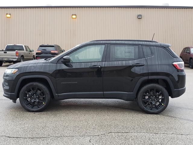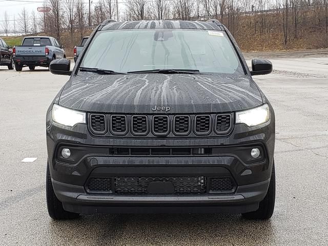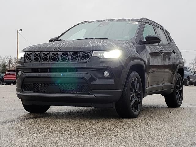Diamond Black Crystal Pearlcoat 2026 Jeep Compass Latitude 4WD 8-Speed Automatic 2.0L I4 DOHC 10.1" Touchscreen Display, 17" x 7" Aluminum Wheels, 3.73 Final Drive Ratio, 4-Wheel Disc Brakes, 4G LTE Wi-Fi Hot Spot, 6 Speakers, ABS brakes, Air Conditioning, Altitude Special Edition, AM/FM radio: SiriusXM, Auto High-beam Headlights, Automatic temperature control, Black Day Light Opening Moldings, Bluetooth Handsfree Phone and Audio, Brake assist, Bumpers: body-color, Compass, Delay-off headlights, Driver door bin, Driver vanity mirror, Dual front impact airbags, Dual front side impact airbags, Electronic Stability Control, Emergency communication system: SiriusXM Guardian, Four wheel independent suspension, Front anti-roll bar, Front Bucket Seats, Front Center Armrest w/Storage, Front fog lights, Front License Plate Bracket, Front reading lights, Fully automatic headlights, Global Telematics Box Module, Gloss Black Surround/Neutral Gray Rings, Heated door mirrors, Heated front seats, Heated steering wheel, Illuminated entry, Knee airbag, Leather Shift Knob, Leather steering wheel, Low tire pressure warning, MyFlexCare Service Plan, Neutral Gray Exterior Badging, Occupant sensing airbag, Outside temperature display, Overhead airbag, Overhead console, Panic alarm, ParkView Rear Back-Up Camera, Passenger door bin, Passenger vanity mirror, Piano Black Interior Accents, Power door mirrors, Power steering, Power windows, Premium audio system: UConnect 5, Premium Cloth/Vinyl Bucket Seats, Quick Order Package 29N Altitude, Radio: Uconnect 5 with 8.4" Display, Rear anti-roll bar, Rear seat center armrest, Rear window defroster, Rear window wiper, Remote keyless entry, Security system, SiriusXM Satellite Radio, Sliding Sun Visors with Illuminated Mirrors, Speed control, Split folding rear seat, Spoiler, Steering wheel mounted audio controls, Tachometer, Telescoping steering wheel, Tilt steering wheel, Traction control, Trip computer, Variably intermittent wipers, Wheels: 18" x 7" Gloss Black Painted Aluminum.