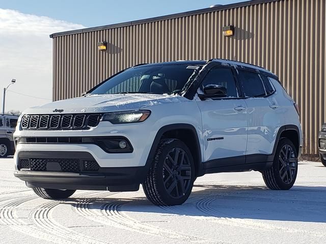 Bright White Clearcoat 2026 Jeep Compass Limited 4WD 8-Speed Automatic 2.0L I4 DOHC 10.1" Touchscreen Display, 3.73 Final Drive Ratio, 4-Wheel Disc Brakes, 4G LTE Wi-Fi Hot Spot, 6 Speakers, ABS brakes, Air Conditioning, Alloy wheels, AM/FM radio: SiriusXM, Auto High-beam Headlights, Auto-dimming Rear-View mirror, Automatic temperature control, Black Day Light Opening Moldings, Brake assist, Bumpers: body-color, Compass, Delay-off headlights, Driver door bin, Driver vanity mirror, Dual front impact airbags, Dual front side impact airbags, Electronic Stability Control, Emergency communication system: SiriusXM Guardian, Four wheel independent suspension, Front anti-roll bar, Front Bucket Seats, Front Center Armrest w/Storage, Front dual zone A/C, Front fog lights, Front License Plate Bracket, Front reading lights, Fully automatic headlights, Global Telematics Box Module, Gloss Black Surround/Neutral Gray Rings, Heated door mirrors, Heated front seats, Heated steering wheel, Illuminated entry, Knee airbag, Leather Shift Knob, Leather steering wheel, Leatherette Seats, Limited Altitude Pack, Low tire pressure warning, MyFlexCare Service Plan, Neutral Gray Exterior Accents, Neutral Gray Exterior Badging, Occupant sensing airbag, Outside temperature display, Overhead airbag, Overhead console, Panic alarm, ParkView Rear Back-Up Camera, Passenger door bin, Passenger vanity mirror, Piano Black Interior Accents, Power door mirrors, Power driver seat, Power Liftgate, Power steering, Power windows, Premium audio system: UConnect 5, Quick Order Package 29W Limited Altitude, Radio: Uconnect 5 with 10.1" Display, Rain sensing wipers, Rear anti-roll bar, Rear seat center armrest, Rear window defroster, Rear window wiper, Remote keyless entry, Security system, SiriusXM Guardian - Included Trail (B), SiriusXM Radio Service, Speed control, Split folding rear seat, Spoiler, Steering wheel mounted audio controls, Tachometer, Telescoping steering wheel, Tilt steering wheel, Traction control, Trip computer, Turn signal indicator mirrors, Variably intermittent wipers, Wheels: 18" x 7" Painted Diamond Cut Aluminum, Wheels: 19" x 7.5" Aluminum Painted.