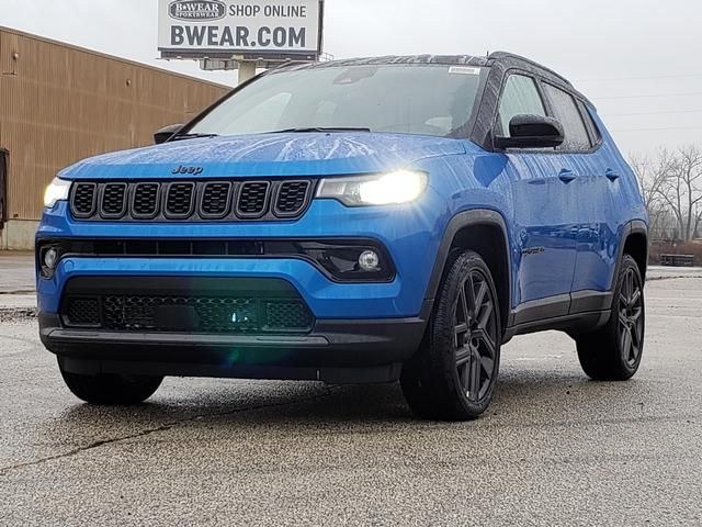 Hydro Blue Pearlcoat 2026 Jeep Compass Limited 4WD 8-Speed Automatic 2.0L I4 DOHC 10.1" Touchscreen Display, 3.73 Final Drive Ratio, 4-Wheel Disc Brakes, 4G LTE Wi-Fi Hot Spot, 6 Speakers, ABS brakes, Air Conditioning, Alloy wheels, AM/FM radio: SiriusXM, Auto High-beam Headlights, Auto-dimming Rear-View mirror, Automatic temperature control, Black Day Light Opening Moldings, Brake assist, Bumpers: body-color, Compass, Delay-off headlights, Driver door bin, Driver vanity mirror, Dual front impact airbags, Dual front side impact airbags, Electronic Stability Control, Emergency communication system: SiriusXM Guardian, Four wheel independent suspension, Front anti-roll bar, Front Bucket Seats, Front Center Armrest w/Storage, Front dual zone A/C, Front fog lights, Front License Plate Bracket, Front reading lights, Fully automatic headlights, Global Telematics Box Module, Gloss Black Surround/Neutral Gray Rings, Heated door mirrors, Heated front seats, Heated steering wheel, Illuminated entry, Knee airbag, Leather Shift Knob, Leather steering wheel, Leatherette Seats, Limited Altitude Pack, Low tire pressure warning, MyFlexCare Service Plan, Neutral Gray Exterior Accents, Neutral Gray Exterior Badging, Occupant sensing airbag, Outside temperature display, Overhead airbag, Overhead console, Panic alarm, ParkView Rear Back-Up Camera, Passenger door bin, Passenger vanity mirror, Piano Black Interior Accents, Power door mirrors, Power driver seat, Power Liftgate, Power steering, Power windows, Premium audio system: UConnect 5, Quick Order Package 29W Limited Altitude, Radio: Uconnect 5 with 10.1" Display, Rain sensing wipers, Rear anti-roll bar, Rear seat center armrest, Rear window defroster, Rear window wiper, Remote keyless entry, Security system, SiriusXM Guardian - Included Trail (B), SiriusXM Radio Service, Speed control, Split folding rear seat, Spoiler, Steering wheel mounted audio controls, Tachometer, Telescoping steering wheel, Tilt steering wheel, Traction control, Trip computer, Turn signal indicator mirrors, Variably intermittent wipers, Wheels: 18" x 7" Painted Diamond Cut Aluminum, Wheels: 19" x 7.5" Aluminum Painted.