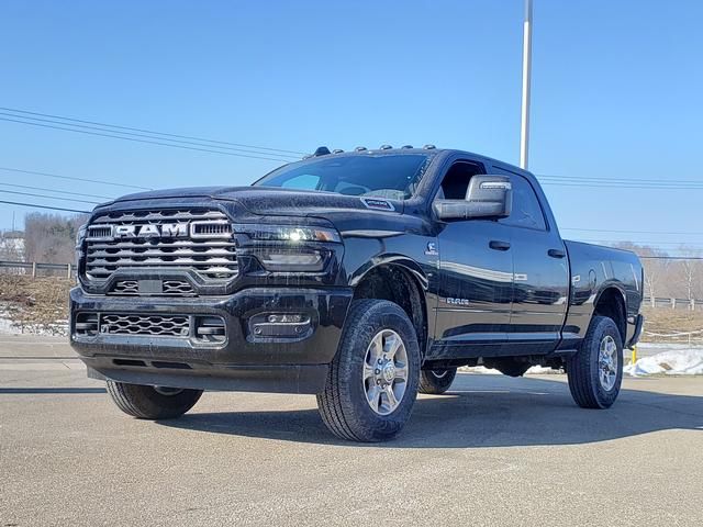 Diamond Black Crystal Pearlcoat 2026 Ram 2500 Big Horn 4WD 8-Speed Automatic 6.7L I6 12" Touchscreen Display, 2 Way Rear Headrest Seat, 2nd Row in Floor Storage Bins, 4 Way Front Headrests, 4-Wheel Disc Brakes, 40/20/40 Split Bench Seat, 4G LTE Wi-Fi Hot Spot, 5th Wheel/Gooseneck Towing Prep Group, 6 Speakers, 9 Alpine Speakers with Subwoofer, ABS brakes, Air Conditioning, Air Conditioning ATC with Dual Zone Control, Alexa Built-in, Alloy wheels, AM/FM radio: SiriusXM, Anti-Spin Differential Rear Axle, Apple CarPlay, Apple CarPlay/Android Auto, Auto Power-Folding Mirrors, Auto-Dimming Rear-View Mirror, Big Horn Level 1 Plus Equipment Group, Black Exterior Mirrors, Black Interior Accents, Body Color Grille-Surround, Brake assist, Bumpers: chrome, Center Hub, Clearance Lamps, Cloth 40/20/40 Bench Seat, Cold Weather Group, Compass, Connected Travel and Traffic Services, Connectivity - US/Canada, Dash Pass Thru Wire Circuits, Delay-off headlights, Disassociated Touchscreen Display, Driver door bin, Dual front impact airbags, Dual front side impact airbags, Dual Glove Boxes, Electronic Stability Control, Emergency Vehicle Alert System (EVAS), Engine Block Heater, Exterior Mirrors Courtesy Lamps, Exterior Mirrors with Heating Element, Exterior Mirrors with Supplemental Signals, Foam Bottle Insert (door Trim Panel), Folding Flat Load Floor Storage, Footwell Courtesy Lamp, For Details, Visit DriveUconnect.com, For More Info, Call 800-643-2112, Forward and Reverse Utility Lights, Front anti-roll bar, Front Armrest with Cupholders, Front Center Armrest w/Storage, Front Center Seat Cushion Storage, Front fog lights, Front License Plate Bracket, Front reading lights, Front Seat Back Map Pockets, Fully automatic headlights, Global Telematics Box Module, Glove Box Lamp, Google Android Auto, GPS Antenna Input, GPS Navigation, HD Radio, Heated door mirrors, Heated Front Seats, Heated Seats and Wheel Group, Heated Steering Wheel, Illuminated entry, Instrument Panel Mounted Auxiliary Switches, Integrated Voice Command with Bluetooth, LED Bed Lighting, Locking Lower Glove Box, Low tire pressure warning, Luxury Steering Wheel, Manual Adjust 4-Way Driver Seat, Manual Adjust 4-Way Front Passenger Seat, Manufacturer's Statement of Origin, Mirror Running Lights, MOPAR Deployable Bed Step, MOPAR Front and Rear Rubber Floor Mats, MOPAR Spray in Bedliner, MOPAR Winter Front Grille Cover, MyFlexCare Service Diesel, Occupant sensing airbag, Off-Road Info Pages, Outside temperature display, Overhead airbag, Overhead console, Painted Front Bumper, Painted Rear Bumper, Panic alarm, ParkView Rear Back-Up Camera, Passenger door bin, Passenger vanity mirror, Power 2-Way Driver Lumbar Adjust, Power Adjust 8-Way Driver Seat, Power Adjust Mirrors, Power door mirrors, Power Heated Folding Telescopic Mirrors, Power steering, Power Telescoping Mirrors, Power windows, Power-Adjustable Convex Aux Mirrors, Premium Cloth 40/20/40 Bench Seat, Quick Order Package 24Z Big Horn, Radio data system, Radio: Uconnect 5 Navigation with 12.0" Display, Radio: Uconnect 5 with 8.4" Display, Rear 60/40 Folding Seat, Rear anti-roll bar, Rear Dome with on/Off Switch Lamp, Rear Folding Seat, Rear seat center armrest, Rear step bumper, Rear window defroster, Remote keyless entry, Remote Start System, Remote USB Port - Charge Only, Security system, Selectable Tire Fill Alert, SiriusXM Radio Service, SiriusXM with 360L, Speed control, Sport Appearance Package, Sport Decal, Steering Wheel Mounted Audio Controls, Storage Tray, Tachometer, Tilt steering wheel, Traction control, Trailer Tow Pages, Trip computer, Turn signal indicator mirrors, Variably intermittent wipers, Voltmeter, Wheels: 18" x 8.0" Polished Aluminum. Price includes: $1000 - 2026 Great Lakes BC Bonus Cash . Exp. 03/31/2026 $1000 - 2026 National Bonus Cash . Exp. 03/31/2026