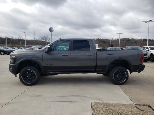 Ceramic Gray Clearcoat 2026 Ram 2500 Rebel 4WD 8-Speed Automatic 6.4L V8 14.4" Touchscreen Display, 17 Speaker Harman/Kardon Premium Sound, 2 Way Rear Headrest Seat, 4 Adjustable Cargo Tie-Down Hooks, 4 Way Front Headrests, 4-Wheel Disc Brakes, 4G LTE Wi-Fi Hot Spot, 6 Speakers, ABS brakes, Adjustable pedals, Air Conditioning, Alexa Built-in, Alloy wheels, Aluminum Litho Instrument Panel Bezels with Black Trim, AM/FM radio: SiriusXM with 360L, Apple CarPlay, Apple CarPlay/Android Auto, Auto Adjust in Reverse Exterior Mirrors, Auto Dim Exterior Mirror, Auto High Beam Headlamp Control, Auto Power-Folding Mirrors, Auto-Dimming Exterior Passenger Mirror, Auto-dimming Rear-View mirror, Automatic temperature control, Black Exterior Mirrors, Black Wheel Center Hub, Block heater, Body Color Door Handles, Brake assist, Center Stop Lamp with Cargo View Camera, Cloth Heated Power Bench Seat, Compass, Connected Travel and Traffic Services, Connectivity - US/Canada, Delay-off headlights, Disassociated Touchscreen Display, Driver door bin, Dual front impact airbags, Dual front side impact airbags, Electronic Stability Control, Emergency Vehicle Alert System (EVAS), Exterior Mirrors Courtesy Lamps, Exterior Mirrors with Heating Element, Exterior Mirrors with Memory, Exterior Mirrors with Supplemental Signals, Folding Flat Load Floor Storage, For Details, Visit DriveUconnect.com, For More Info, Call 800-643-2112, Forward and Reverse Utility Lights, Front anti-roll bar, Front Center Armrest w/Storage, Front Disconnecting Stabilizer Bar, Front Door Locks 2-Door Passive Entry, Front dual zone A/C, Front Electric Winch, Front fog lights, Front License Plate Bracket, Front Passenger Interactive Display, Front reading lights, Fully automatic headlights, Global Telematics Box Module, Google Android Auto, GPS Antenna Input, GPS Navigation, HD Radio, Heated door mirrors, Heated Front Seats, Heated front seats, Heated Steering Wheel, Heated steering wheel, High Back Seats, Illuminated entry, Instrument Cluster Theme 5 - Power Wagon, Integrated Voice Command with Bluetooth, Leather steering wheel, Leather Wrapped Grab Handle, Leather Wrapped Shift Control, LED Bed Lighting, LED Dome Lamp with on/Off Switch, LED Interior Lighting, Low tire pressure warning, Mirror Running Lights, MOPAR Deployable Bed Step, MOPAR Front and Rear Rubber Floor Mats, MOPAR Spray in Bedliner, MyFlexCare Service Plan, Navigation System, Occupant sensing airbag, Off-Road Info Pages, Outside temperature display, Overhead airbag, Overhead console, Overhead LED Lamps, Panic alarm, ParkView Rear Back-Up Camera, Passenger door bin, Passenger vanity mirror, Power 2-Way Driver Lumbar Adjust, Power Adjust 8-Way Driver Seat, Power Adjust Mirrors, Power Adjustable Pedals with Memory, Power door mirrors, Power driver seat, Power Heated Fold Telescopic Mirrors with Memory, Power steering, Power Sunroof, Power Telescoping Mirrors, Power Wagon Instrument Panel Spec Plate, Power Wagon Level 2 Equipment Group, Power windows, Power-Adjustable Convex Aux Mirrors, Premium Overhead Console, Quick Order Package 2UP Power Wagon, Radio data system, Radio: Uconnect 5 Nav with 14.4" Display, Radio: Uconnect 5 Navigation with 12.0" Display, Rain Sensitive Windshield Wipers, Raised Ride Height, RAM Articulink Suspension, RamBox Cargo Management System, Rear 60/40 Folding Seat, Rear anti-roll bar, Rear seat center armrest, Rear step bumper, Rear window defroster, Remote keyless entry, Security system, Selectable Tire Fill Alert, SiriusXM Radio Service, SiriusXM with 360L, Speed control, Split folding rear seat, Sport Performance Hood, Steering wheel mounted audio controls, Sun Visors with Illuminated Vanity Mirrors, Tachometer, Tilt steering wheel, Traction control, Trailer Tow Pages, Trip computer, Tru-Lok Front and Rear Axles, Truck Bed Cargo Divider, Turn signal indicator mirrors, Universal Garage Door Opener, Variably intermittent wi Price includes: $1000 - 2026 National Bonus Cash . Exp. 03/31/2026