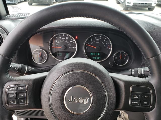 Odometer is 52438 miles below market average! Local trade in, Freshly serviced, 17" x 7.5" Aluminum Wheels, Air Conditioning, Anti-Spin Differential Rear Axle, Audio Jack Input for Mobile Devices, Black 3-Piece Hard Top, Class II Receiver Hitch, Cloth Seats w/Adjustable Head Restraints, Connectivity Group, Front 1-Touch Down Power Windows, Power Convenience Group, Quick Order Package 24S, SIRIUS Satellite Radio, Tinted Rear Quarter & Liftgate Windows, Trailer Tow Group, Trailer Tow w/4-Pin Connector Wiring, Uconnect Voice Command w/Bluetooth, 1-Yr SiriusXM Radio Service, 3.21 Rear Axle Ratio, 4-Wheel Disc Brakes, 8 Speakers, ABS brakes, AM/FM radio, Auto-Dimming Mirror w/Reading Lamp, Brake assist, CD player, Chrome/Leather Wrapped Shift Knob, Compass, Deep Tint Sunscreen Windows, Delete Sunrider Soft Top, Driver door bin, Driver vanity mirror, Dual front impact airbags, Electronic Stability Control, Freedom Panel Storage Bag, Front anti-roll bar, Front Bucket Seats, Front Center Armrest w/Storage, Front fog lights, Integrated roll-over protection, Leather Wrapped Steering Wheel, Low tire pressure warning, Normal Duty Suspension, Occupant sensing airbag, Outside temperature display, Passenger door bin, Passenger vanity mirror, Power Heated Mirrors, Power Locks, Power steering, Radio: 130, Rear anti-roll bar, Rear Window Defroster, Rear Window Wiper/Washer, Remote Keyless Entry, Remote USB Port, Security Alarm, Speed control, Split folding rear seat, Steering wheel mounted audio controls, Sunrider Soft Top, Tachometer, Tilt steering wheel, Tire Pressure Monitoring Display, Traction control, Trip computer, Tubular Side Steps, Variably intermittent wipers, Vehicle Information Center, 17" x 7.5" Aluminum Wheels, Air Conditioning, Anti-Spin Differential Rear Axle, Audio Jack Input for Mobile Devices, Black 3-Piece Hard Top, Class II Receiver Hitch, Cloth Seats w/Adjustable Head Restraints, Connectivity Group, Front 1-Touch Down Power Windows, Power Convenience Group, Quick Order Package 24S, SIRIUS Satellite Radio, Tinted Rear Quarter & Liftgate Windows, Trailer Tow Group, Trailer Tow w/4-Pin Connector Wiring, Uconnect Voice Command w/Bluetooth.